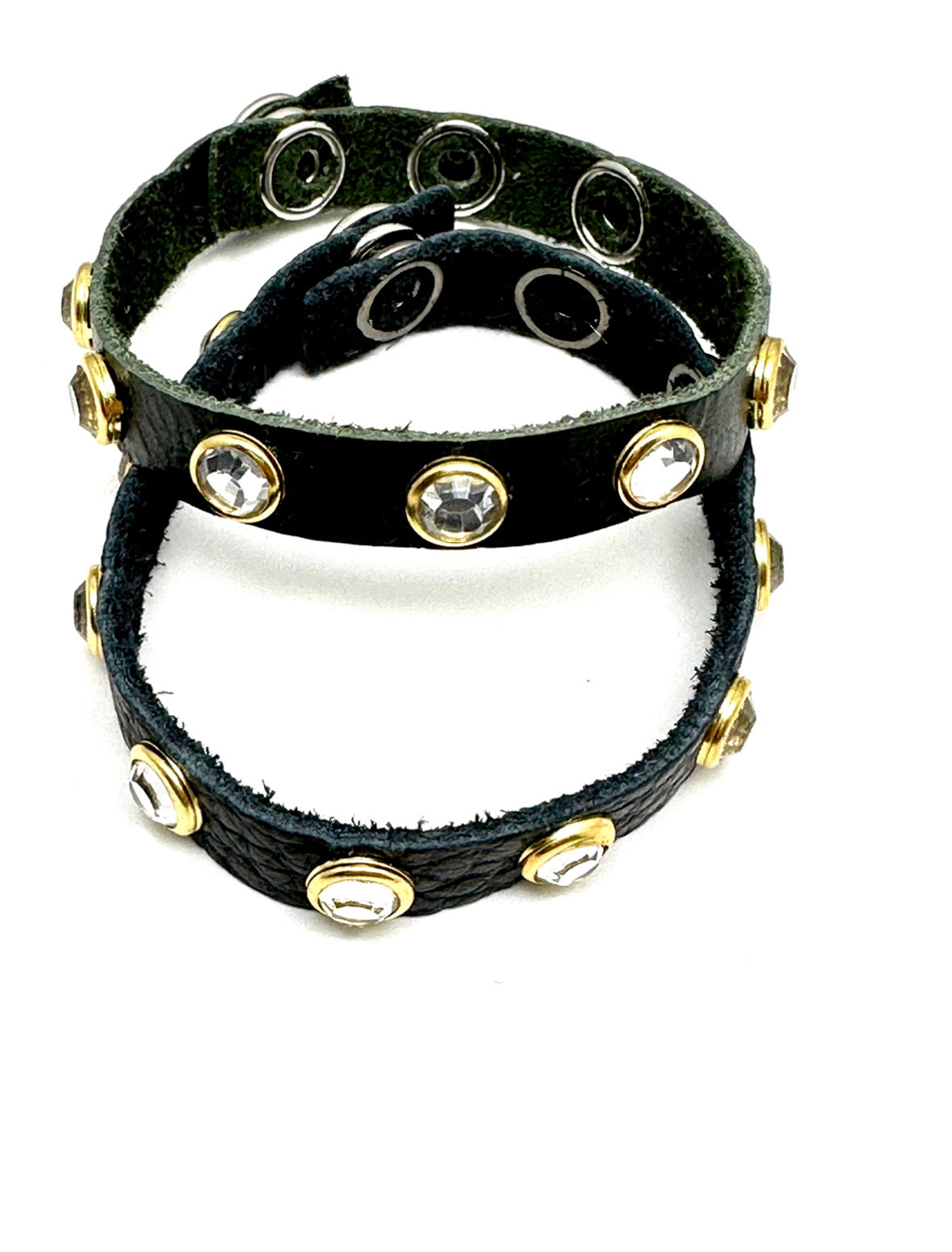 Black 1/2” Snap Leather with Zircon Gemstone