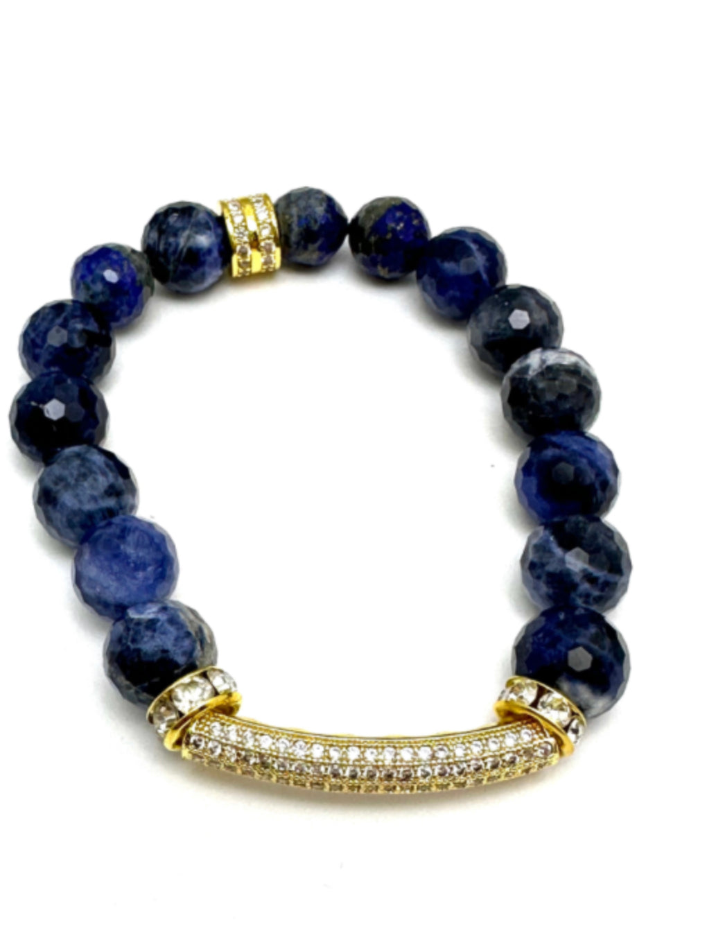 Blue Sodalite Beaded Bracelet with Pave’ Bar