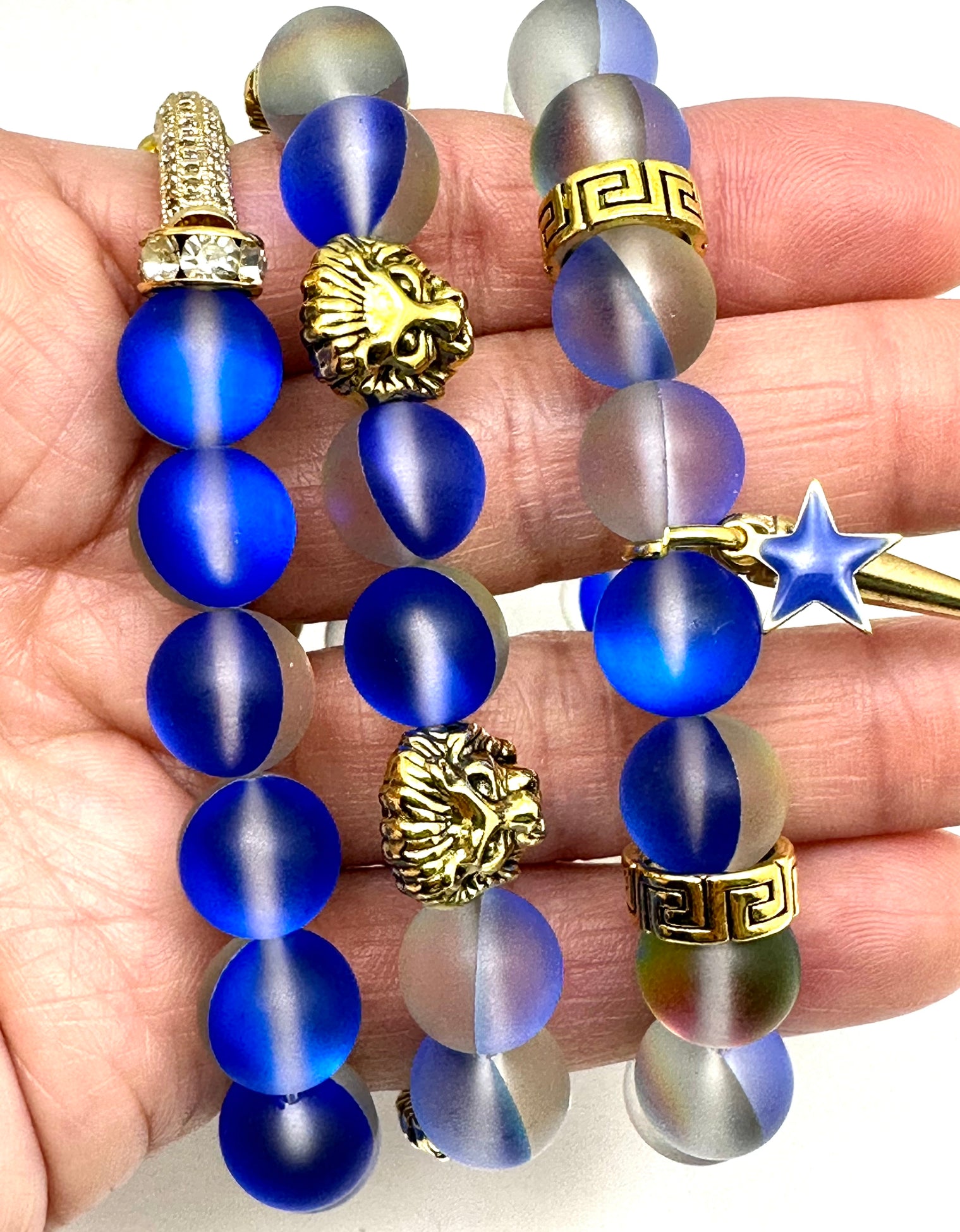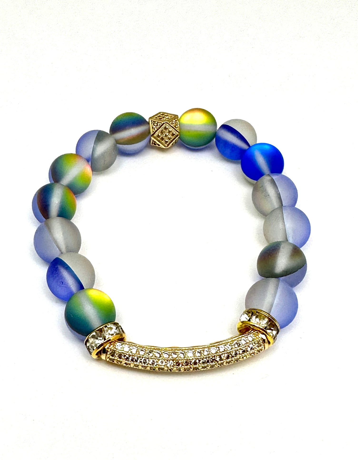 Blue Mermaid Beaded Bracelet with Pave’ Bar