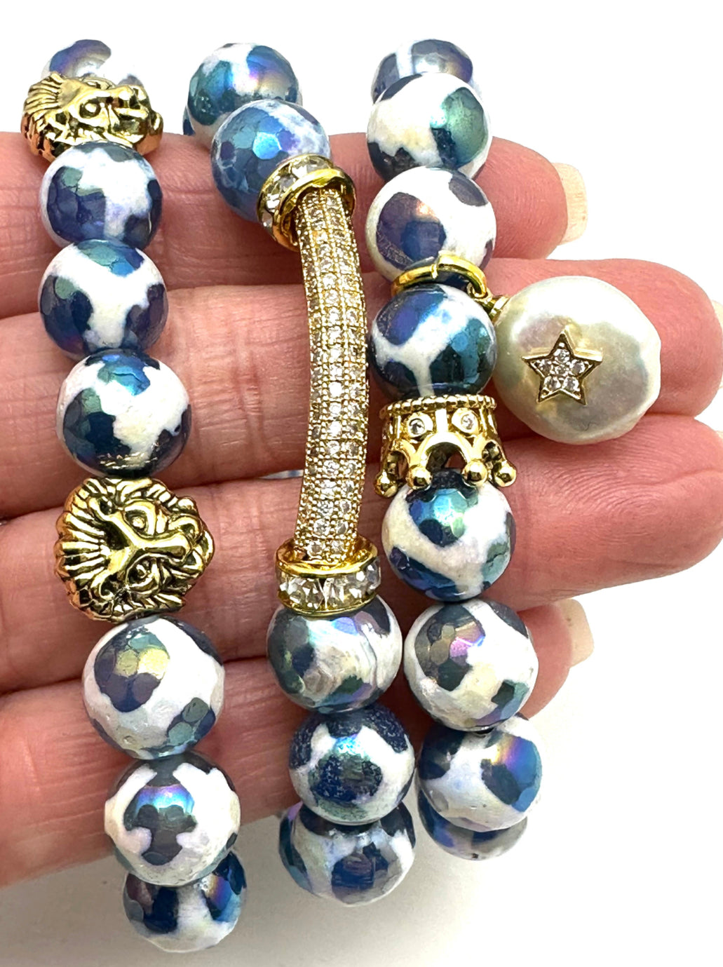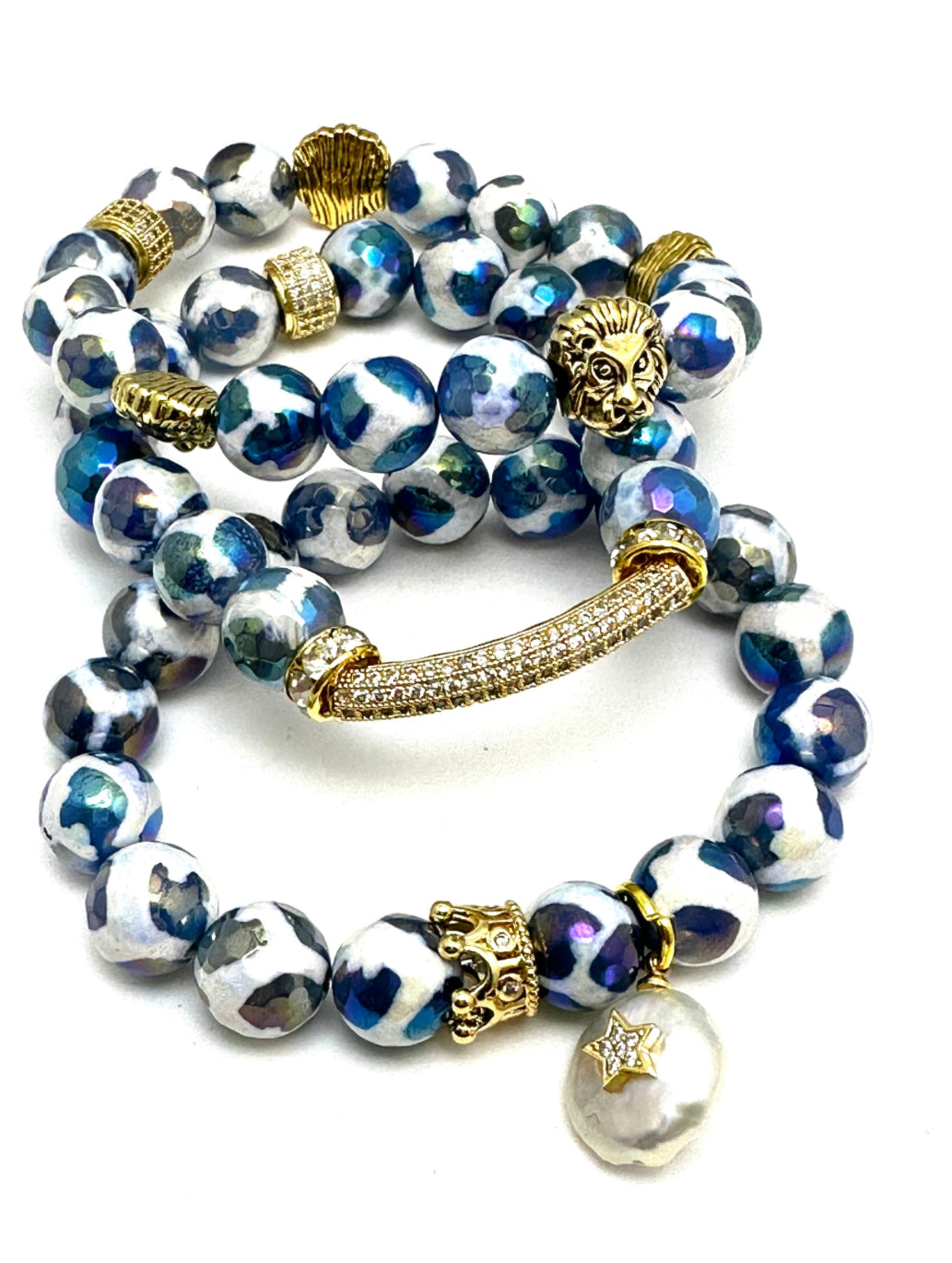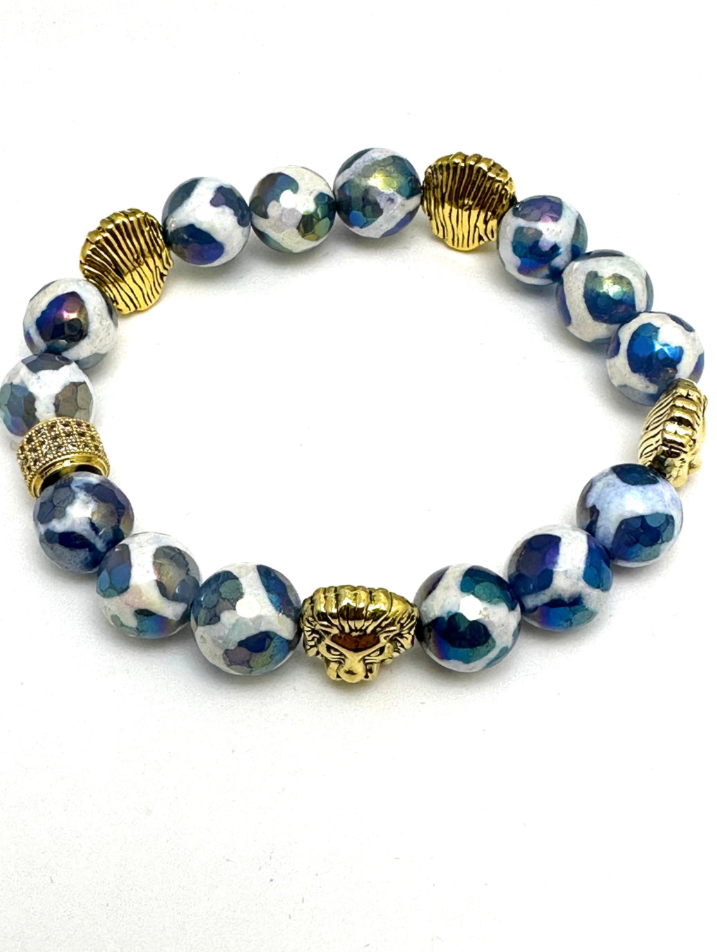 Blue Tibetan Micro-plated Beaded Bracelet with Lion