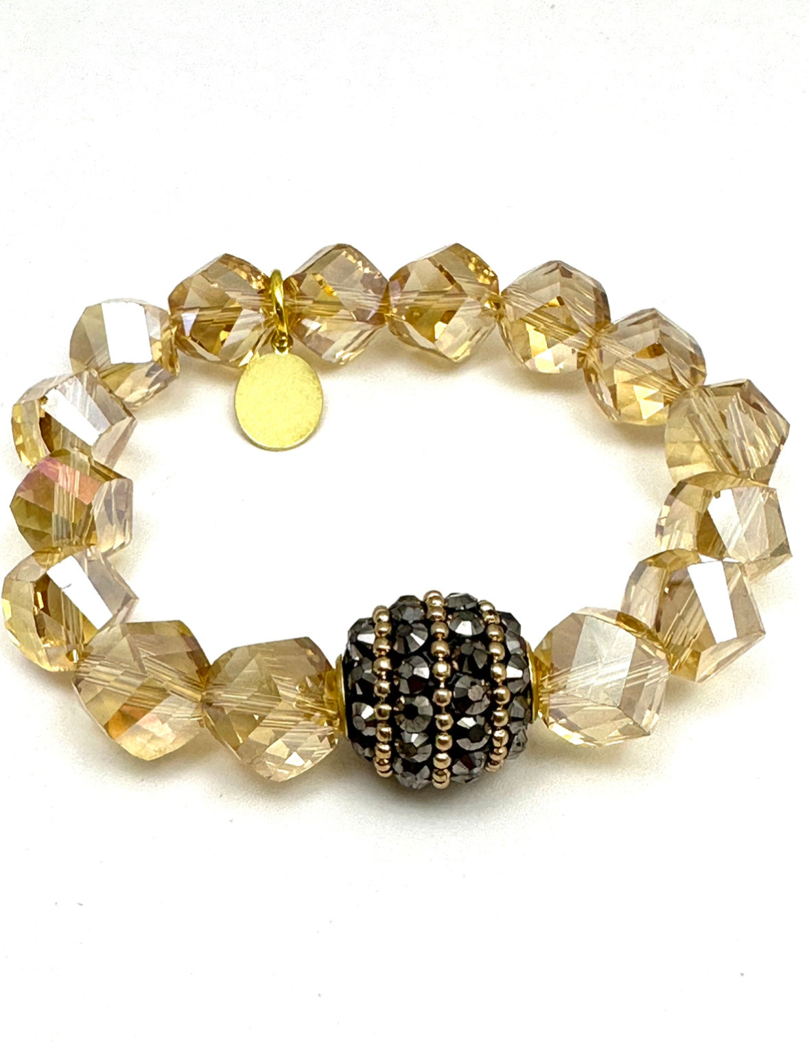 Champagne Crystal Beaded Bracelet with Ball Finding