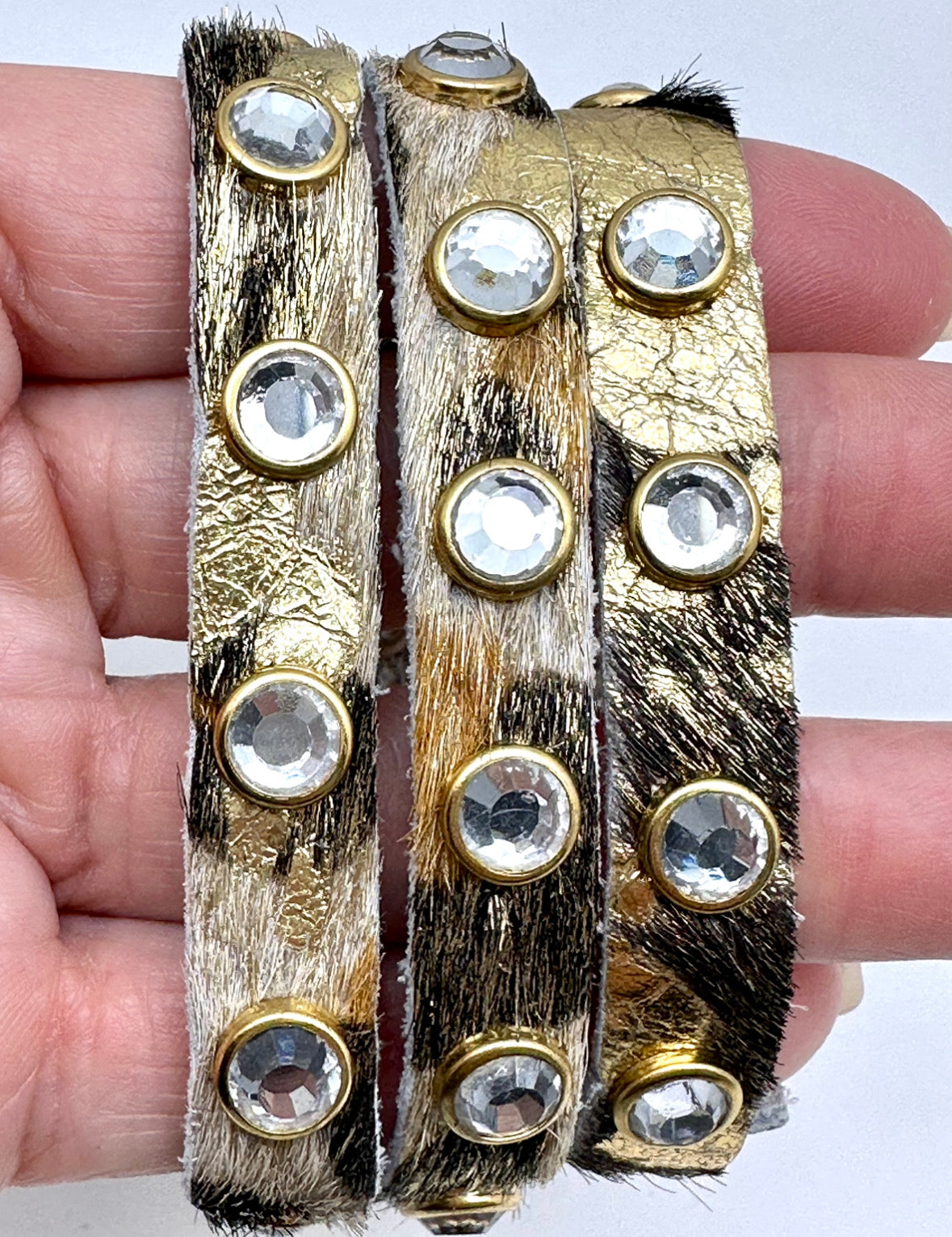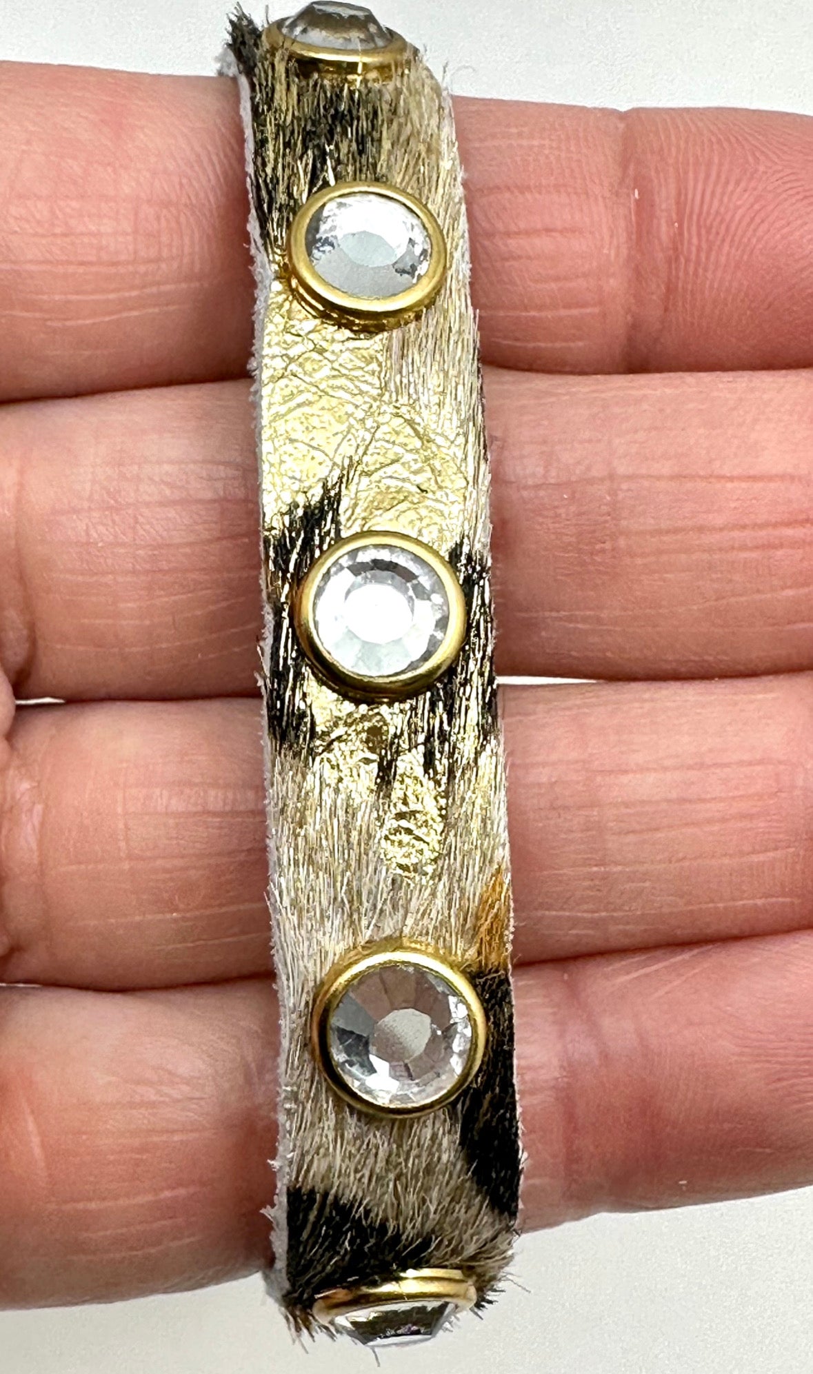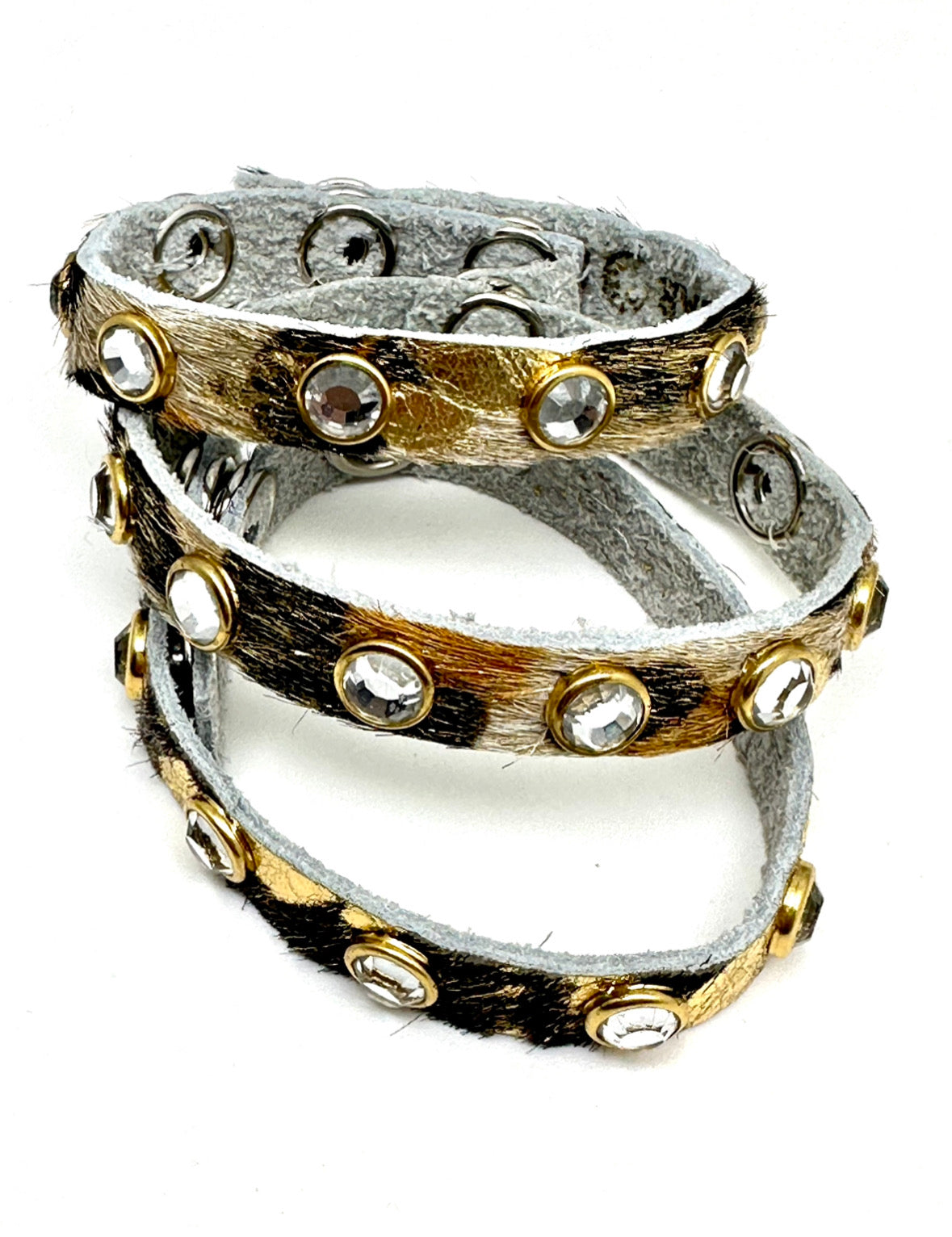 Cheetah Metallic 1/2” Snap Leather with Zircon Gemstone