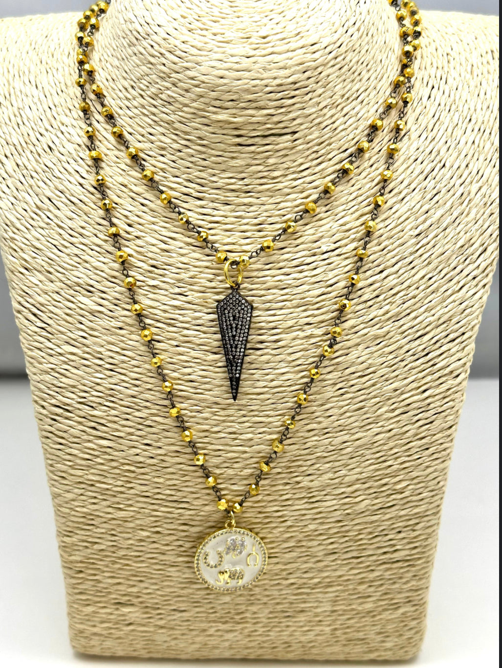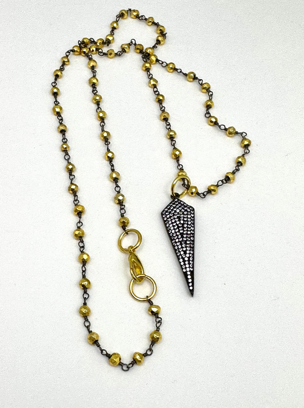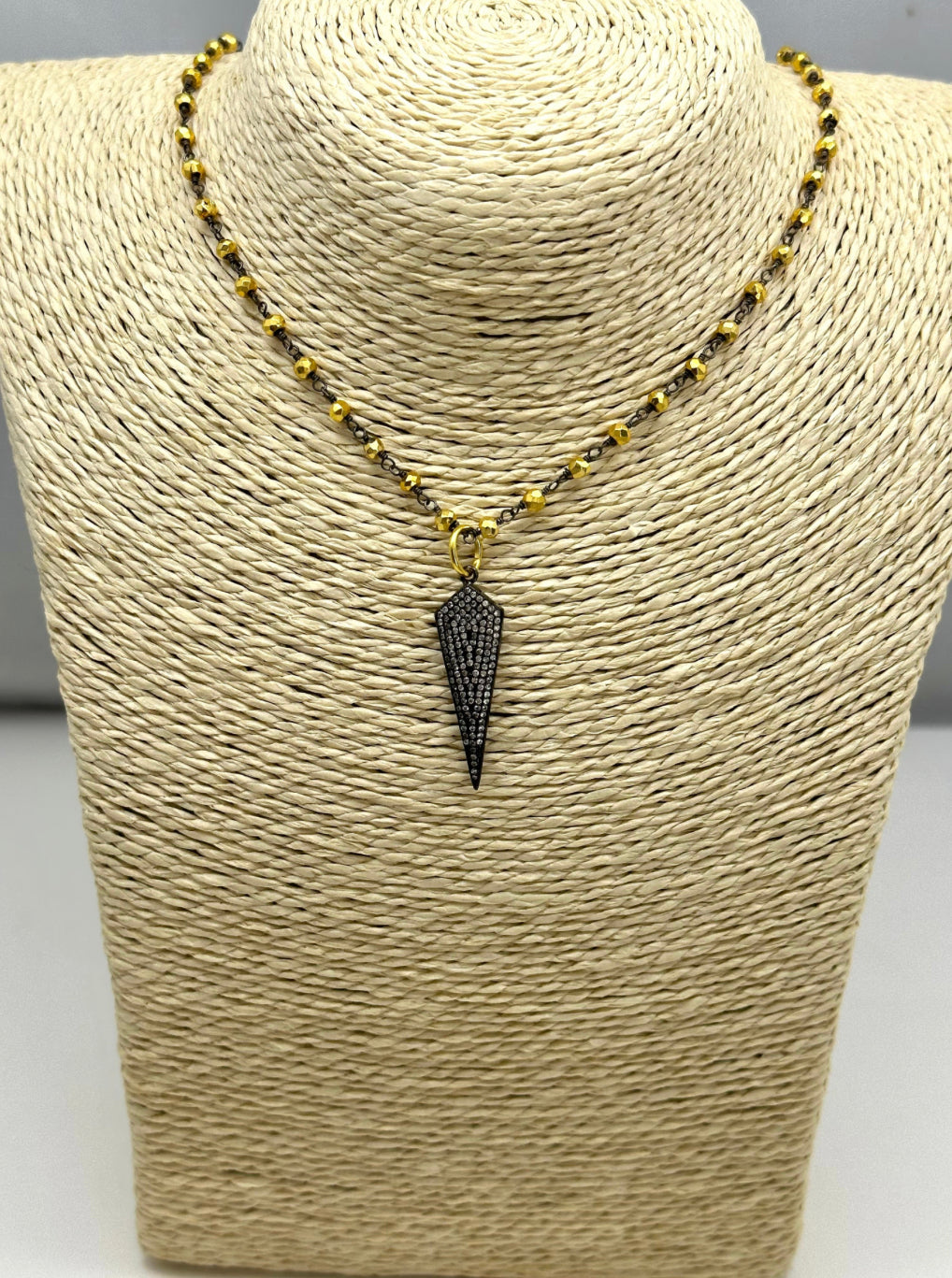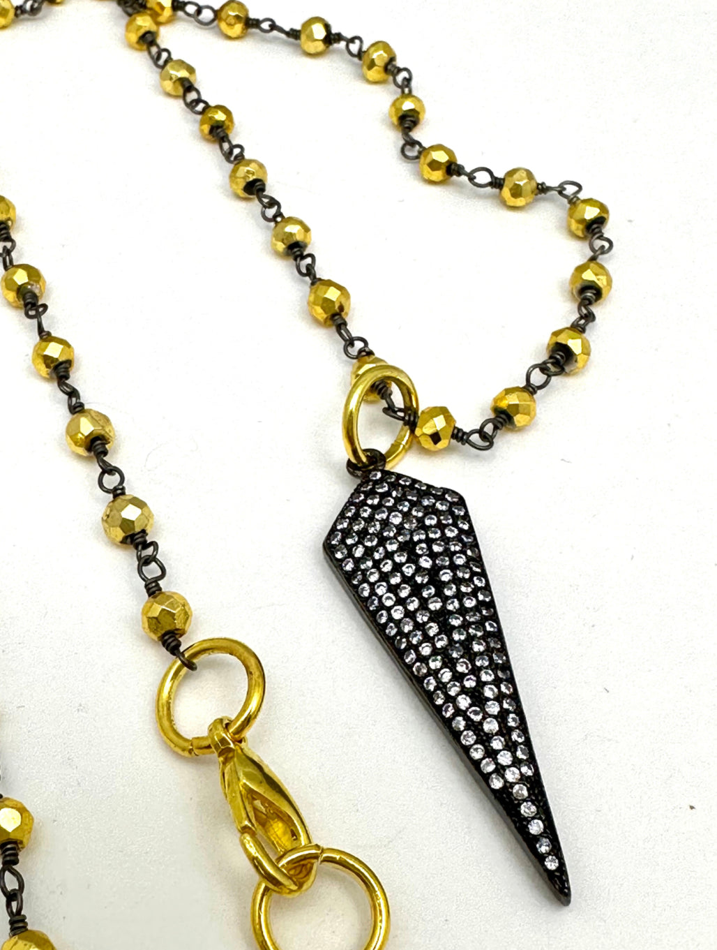 Gold Rosary Chain with Pave’ Gunmetal Dagger