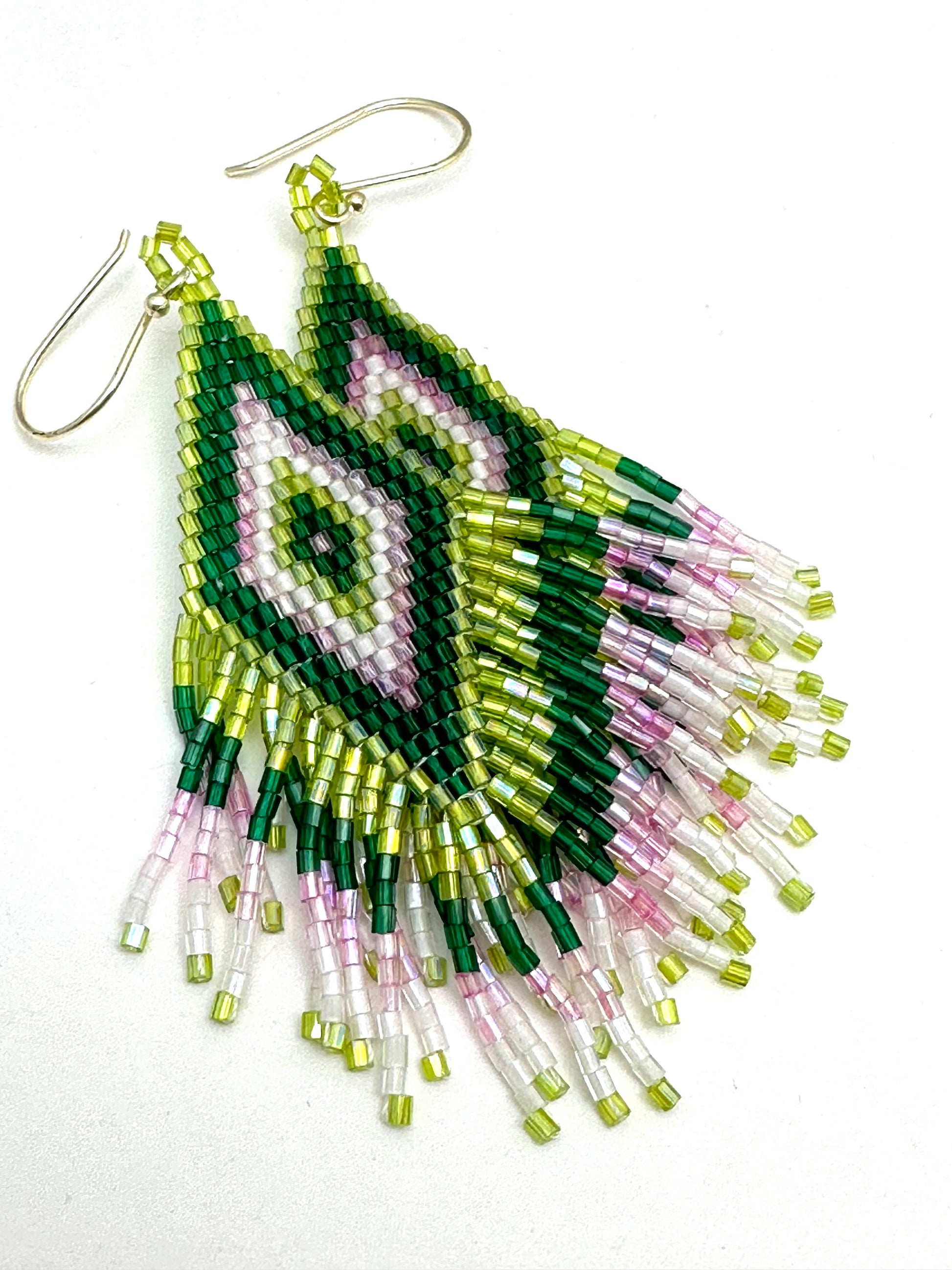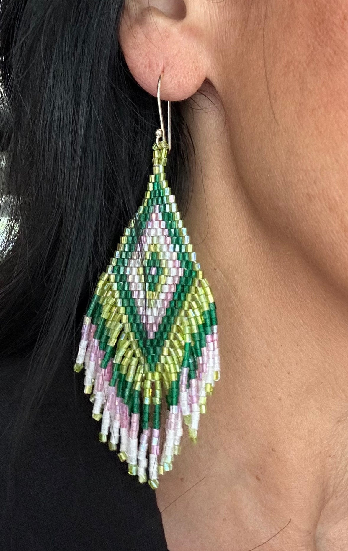 Green with Hint of Pink Beaded Earring