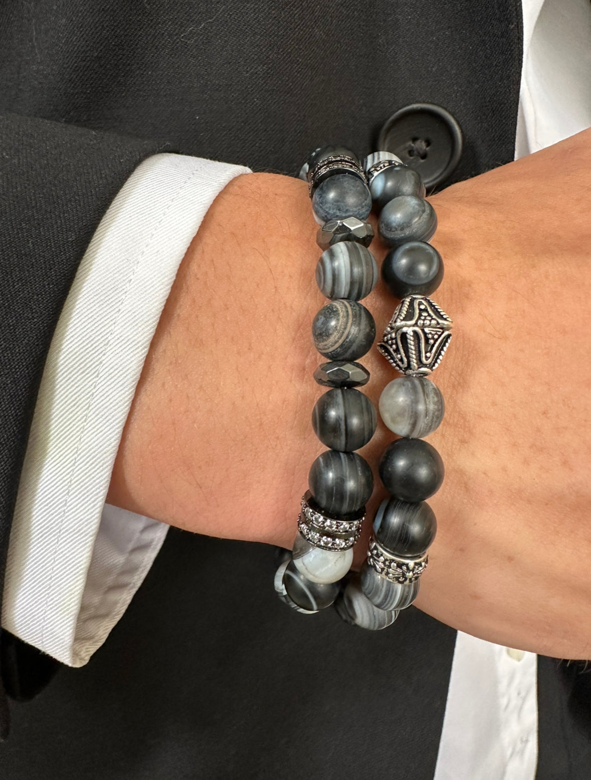 Men’s bracelets fit most wrists comfortably up to 7.75” and are made with stretchy string so that they are easy and convenient to roll on and off. For custom size bracelets, please contact us at wearhazel@gmail.com. We’ll happily make it for you. Additional fees may apply.