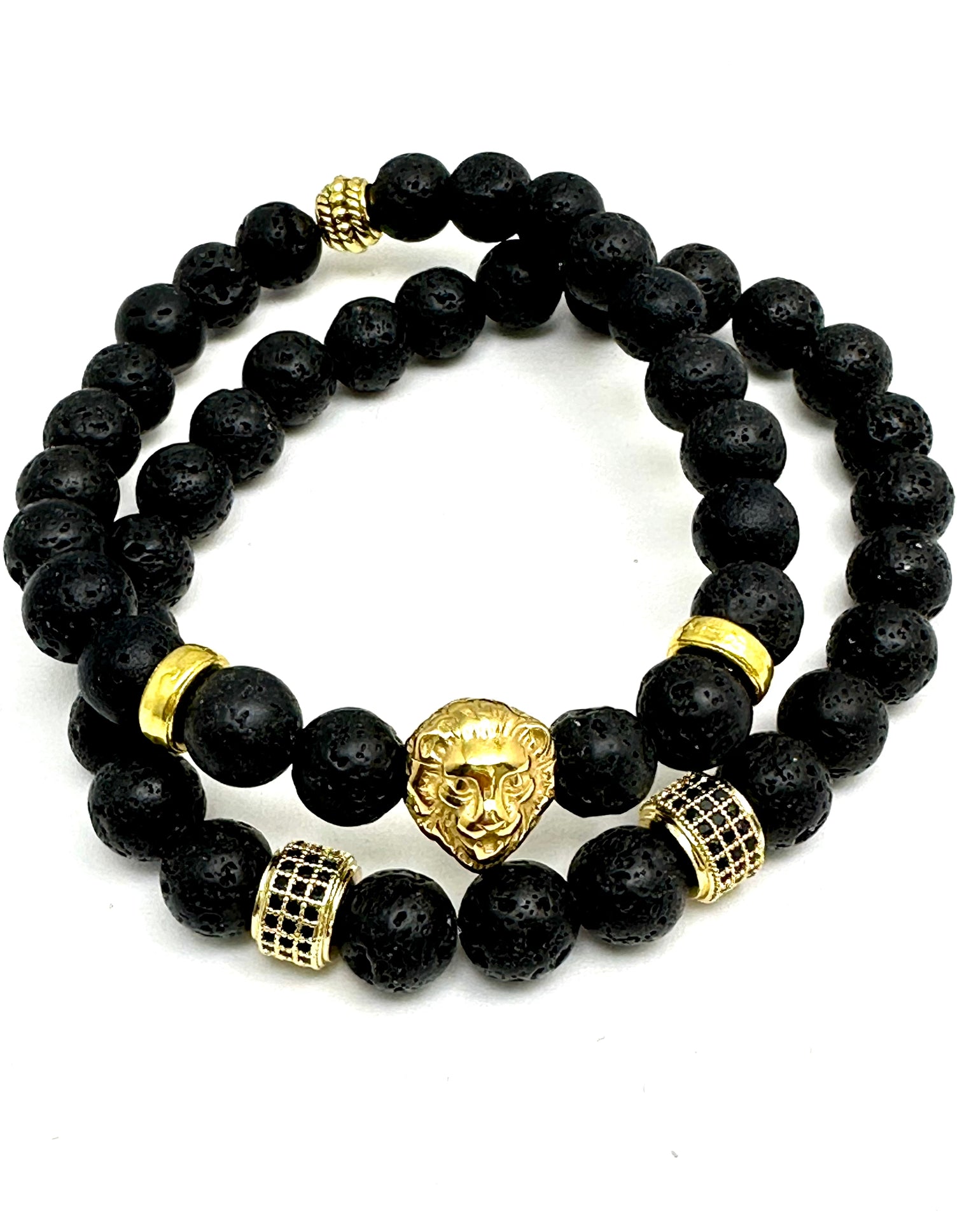 Men’s Black Lava Stone Beaded Bracelet with Lion and Pave’