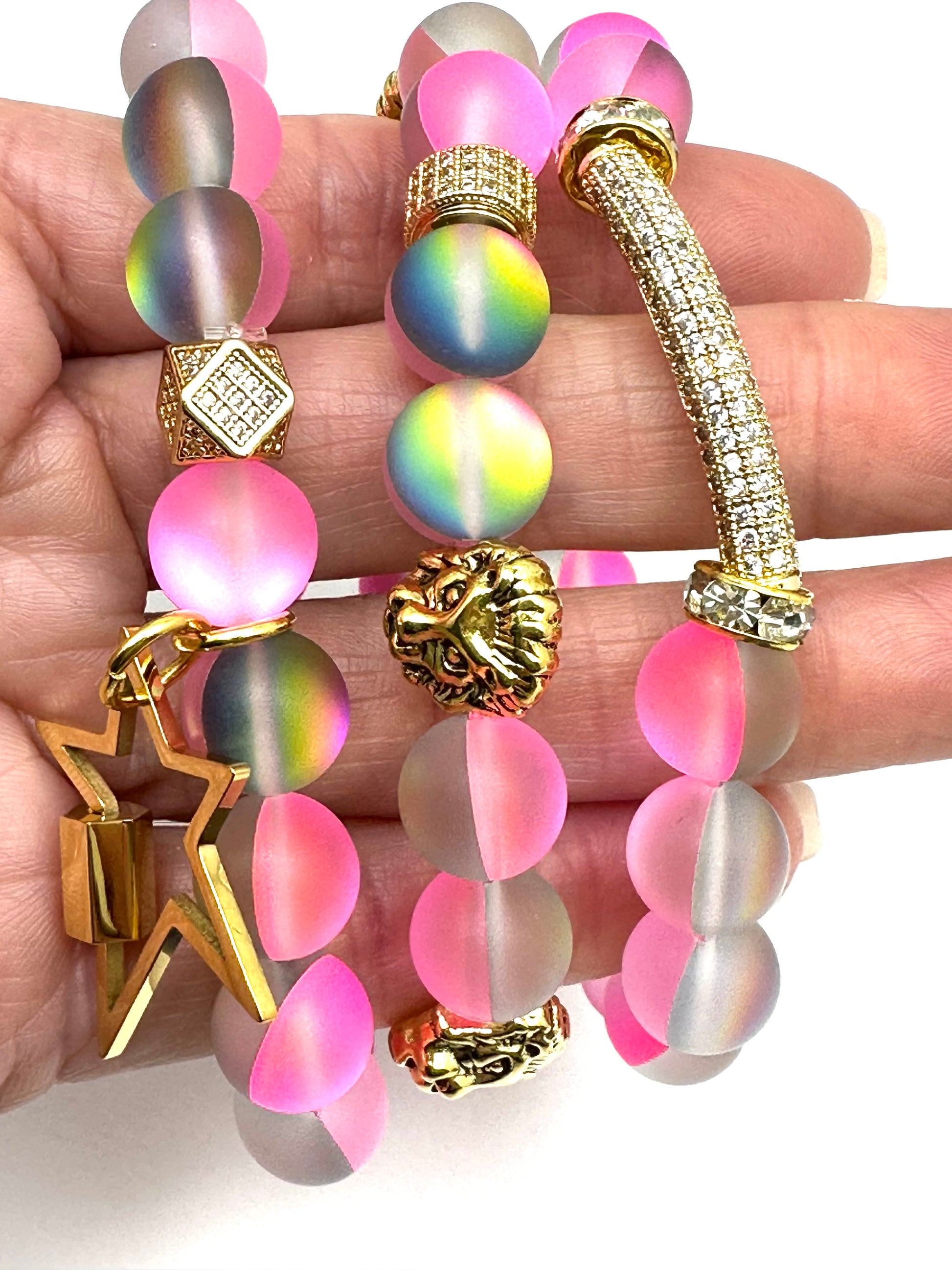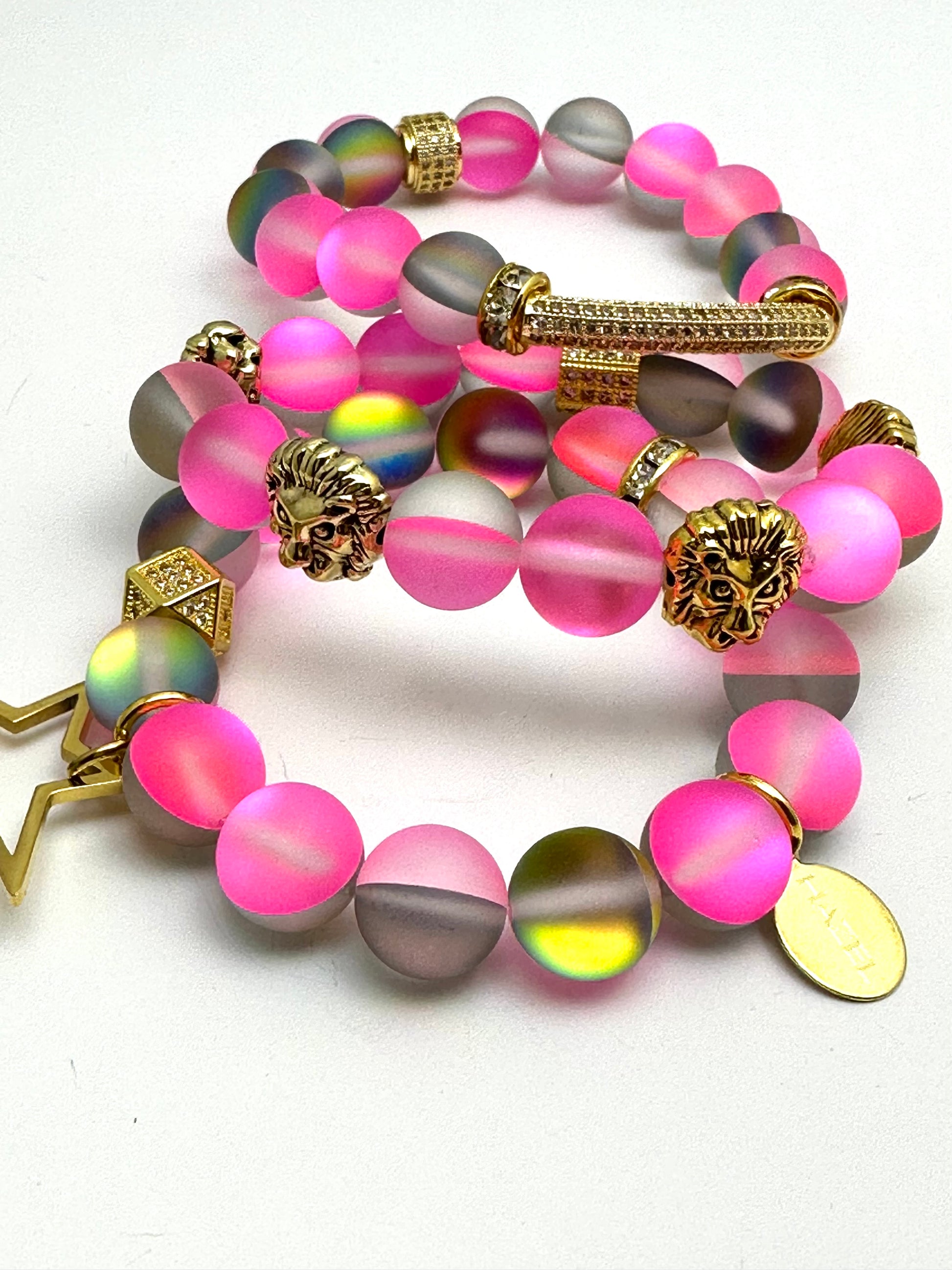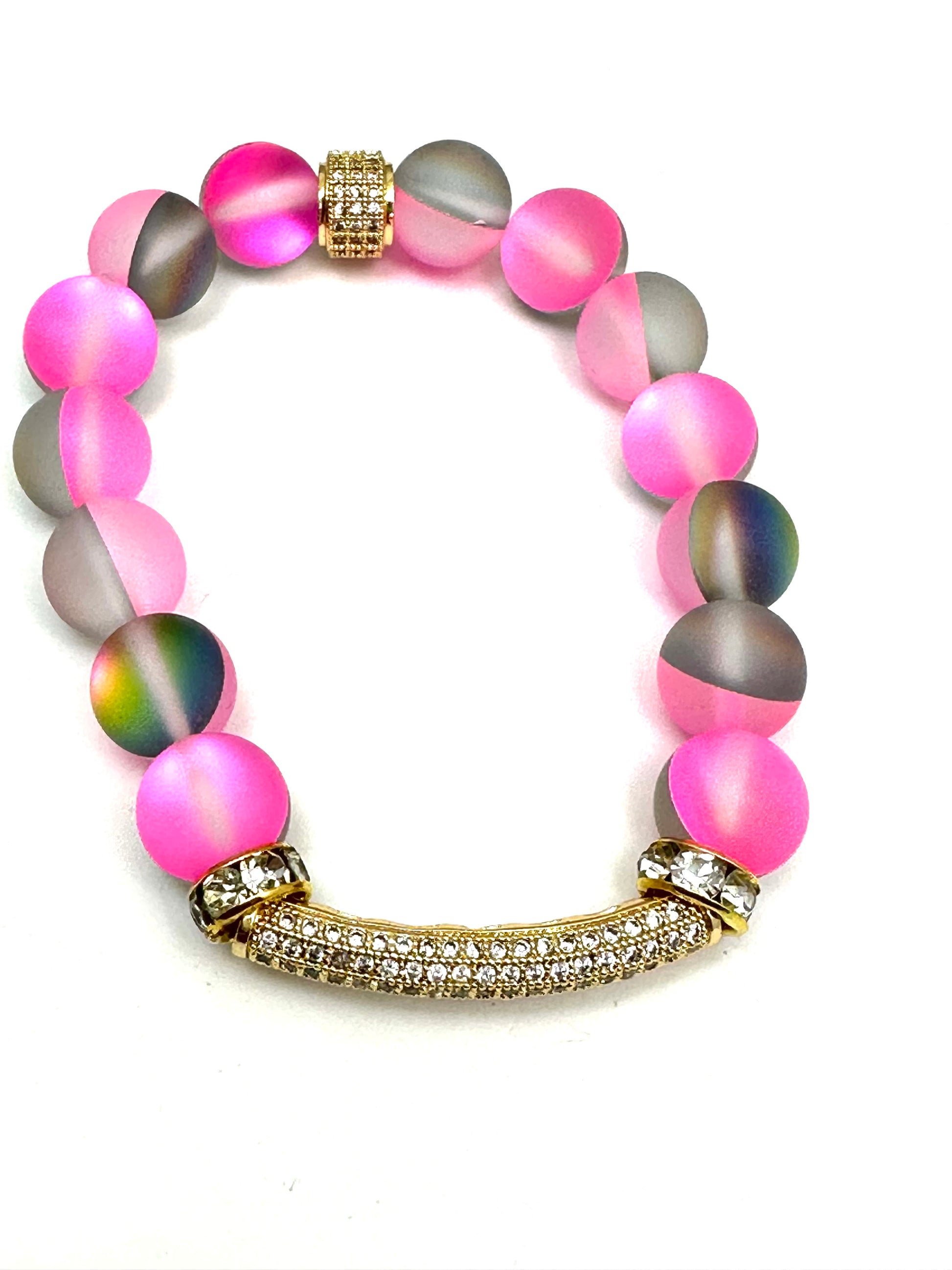 Pink Mermaid Beaded Bracelet with Pave’ Bar