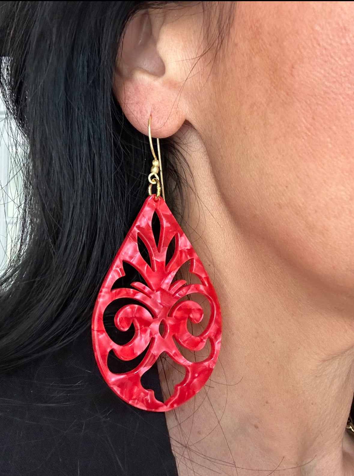 Red Tortoiseshell Drop Resin Acrylic Earrings