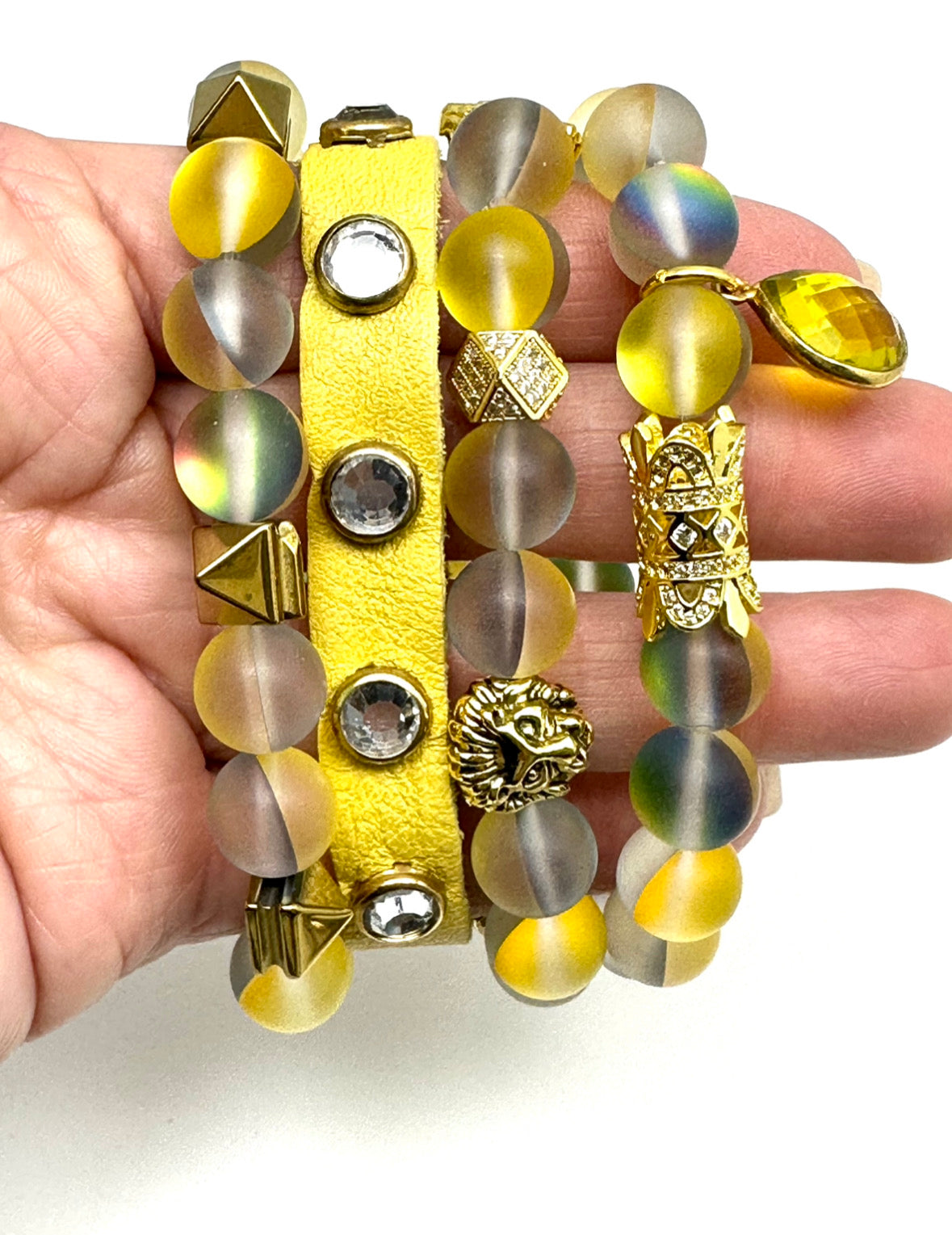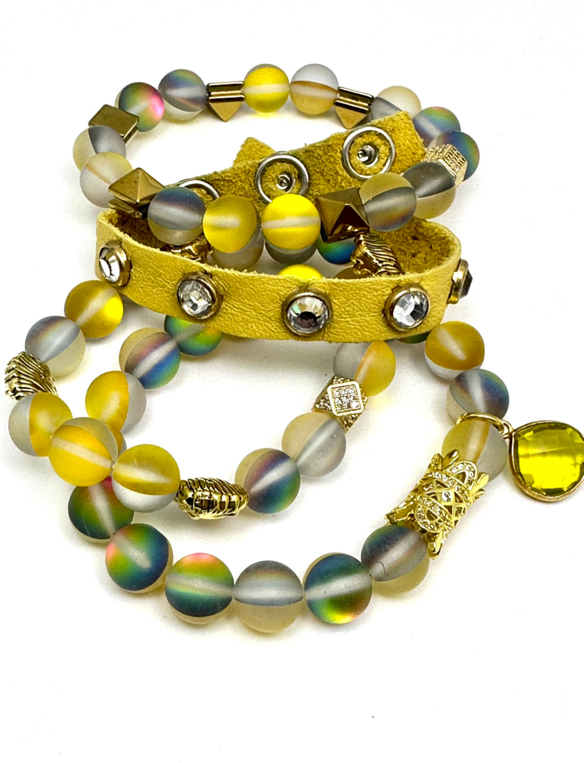 Yellow 1/2” Snap Leather with Zircon Gemstones