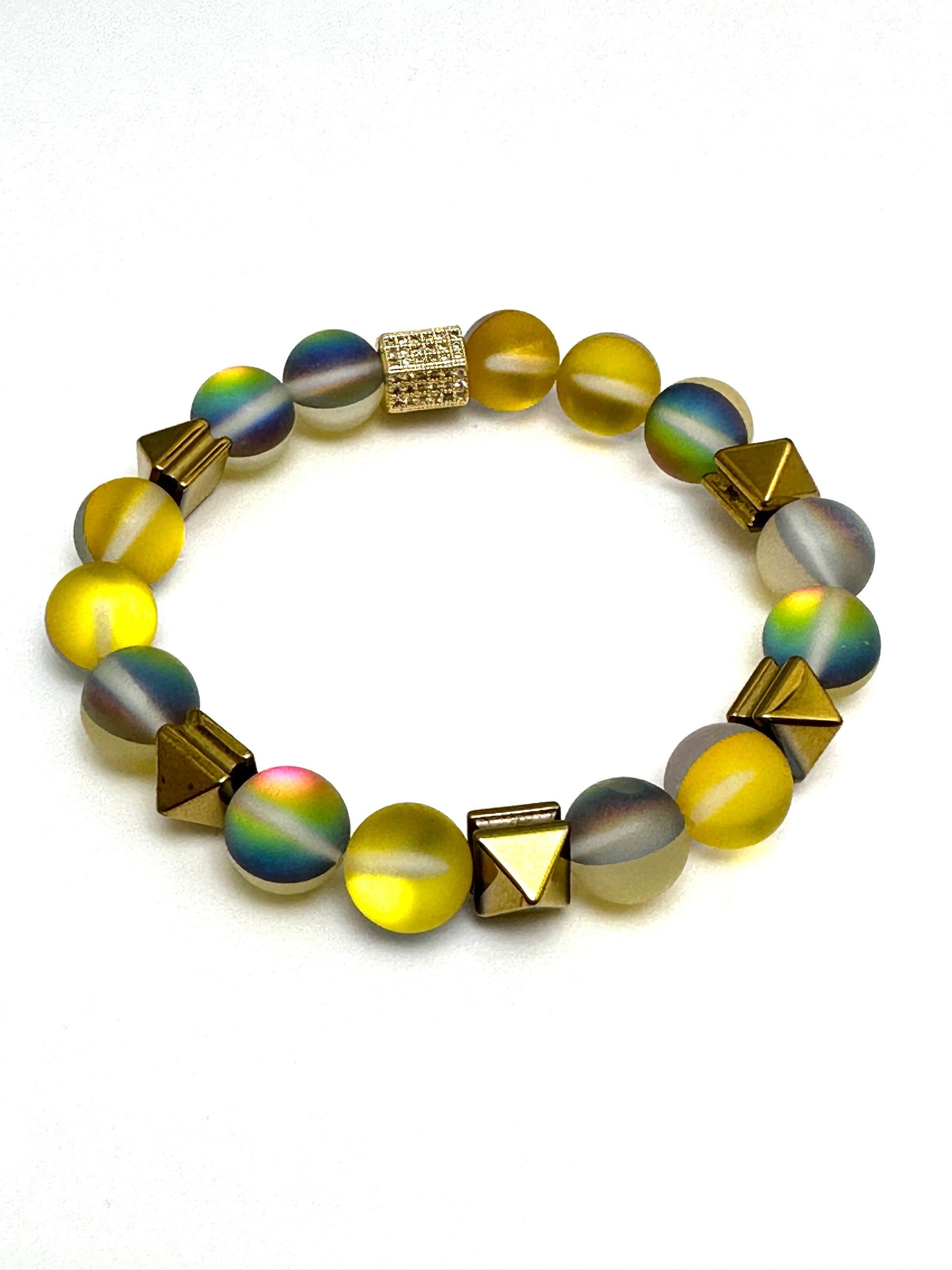 Yellow Mermaid Beaded Bracelet with Pyramid